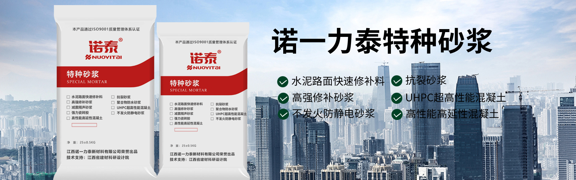 關(guān)鍵詞: 灌漿料 壓漿料 抗裂砂漿 水泥路面修補(bǔ)砂漿 防水砂漿 高延性混凝土 江西南昌粘結(jié)砂漿